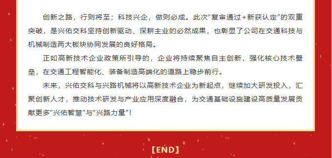 雙喜臨門 | 興佑交科高企復審圓滿通過、興路機械新獲認定,創新之路再攀高峰