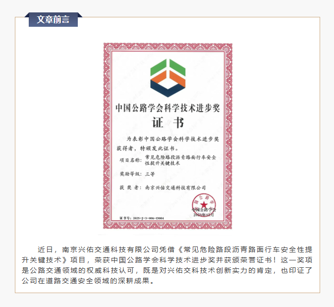 喜報 | 興佑交科榮獲中國公路學會科學技術進步獎!